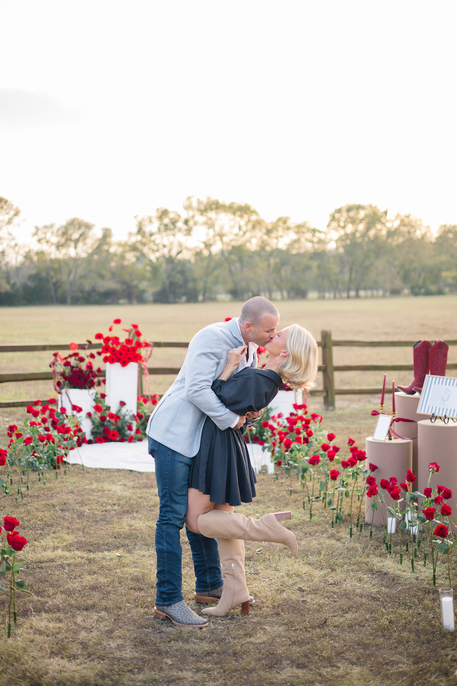 This proposal embodied everything we love about creating personalized moments: romance, personality, and heart. For S + C, it wasn’t just a proposal — it was a love story written in red roses, western charm, and the quiet beauty of the open field.