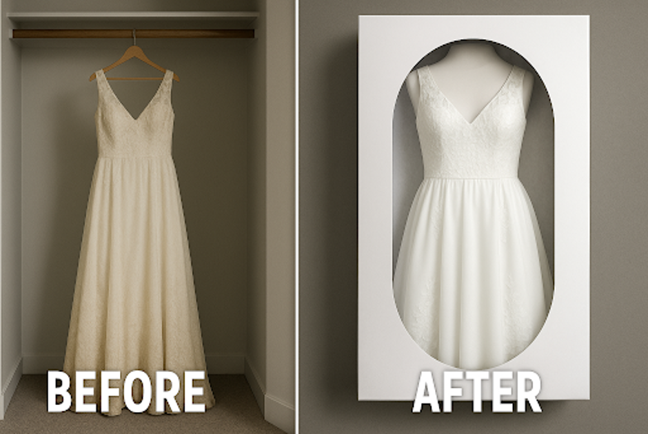 Whether you plan to hand it down to a daughter, wear it again for an anniversary shoot, or simply keep it as a memory of who you were on that day, your dress deserves to be protected.