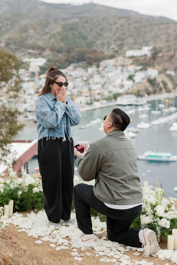 The Yes Girls has had the privilege of creating unforgettable Catalina Island proposal experiences along the island’s most breathtaking coastal settings. Considered one of the top event planners in Catalina, we are honored to bring such beautiful and memorable proposals to life. With its Mediterranean charm, sparkling turquoise waters, and dramatic cliffside views, Catalina Island offers a backdrop that feels effortlessly romantic and timeless. We are incredibly grateful for the trusted venue partners and talented local vendors who help each proposal unfold seamlessly, ensuring every detail is beautifully executed. Together, we’ve brought countless love stories to life — crafting once-in-a-lifetime “yes” moments in one of Southern California’s most iconic and picturesque destinations.