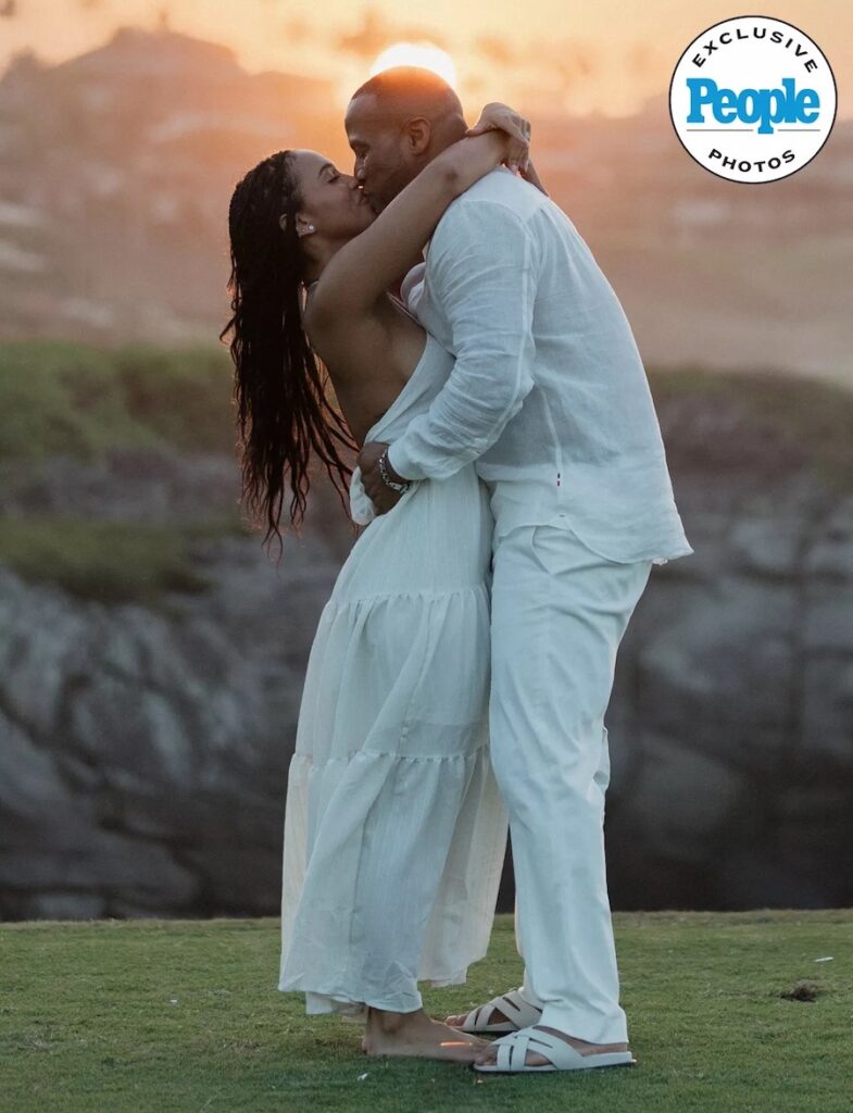 The final stop was the crown jewel of the day: a secluded cliffside spot overlooking the Pacific Ocean. As the sun began its descent, casting a golden glow across the sky, the couple stood against the dramatic backdrop of endless waves and rugged cliffs.