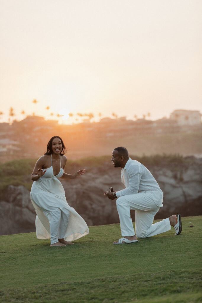 The plan was simple yet brilliant: he would organize a professional photoshoot under the guise of capturing their Maui vacation, with the expert help of The Yes Girls team. This clever ruse allowed them to explore multiple stunning locations around the Ritz-Carlton Maui—each more beautiful than the last—without arousing suspicion. What better way to set the stage for a proposal than to have a day full of laughter, shared moments, and a camera to capture it all?