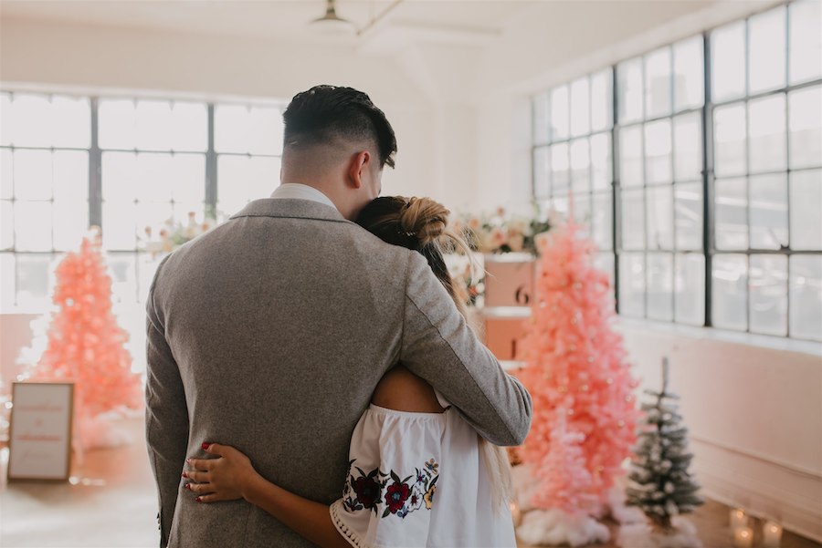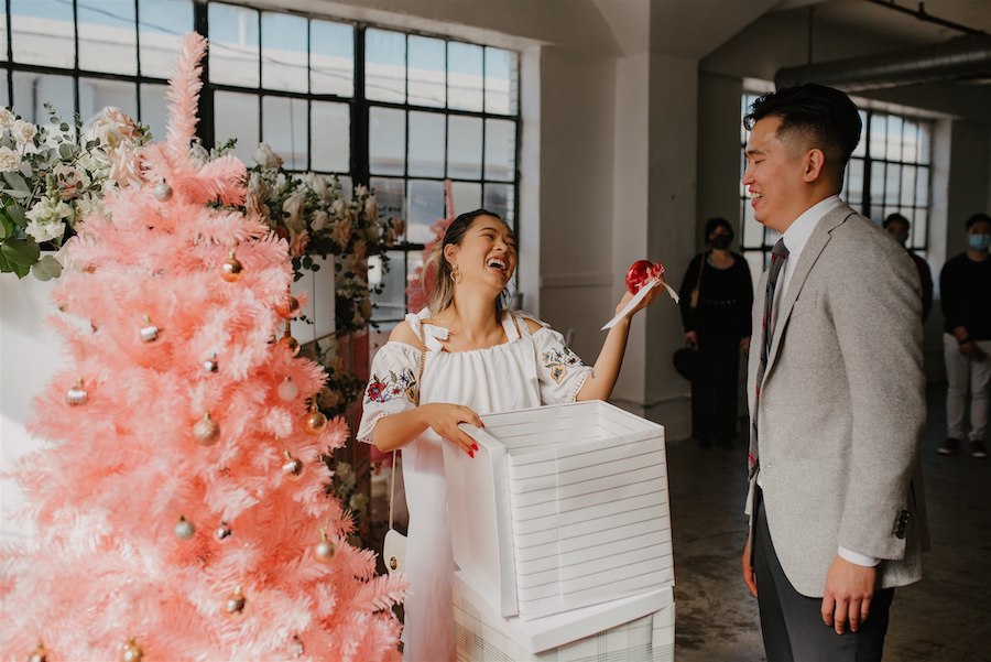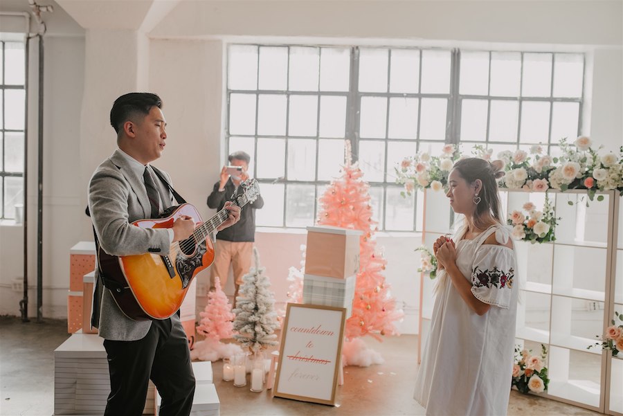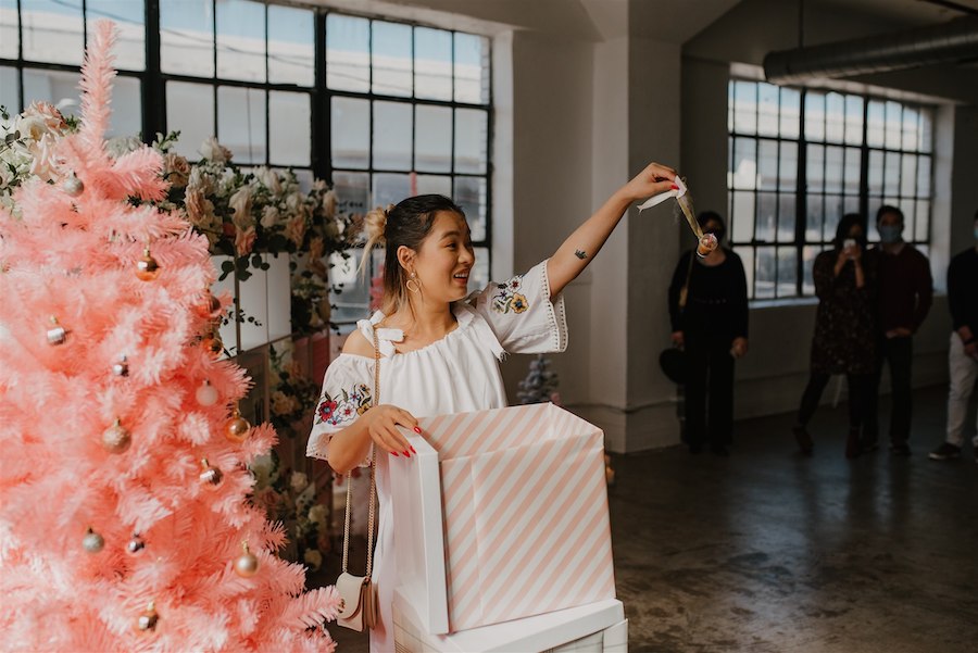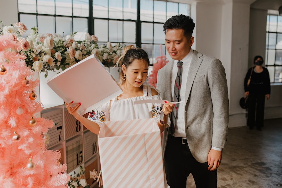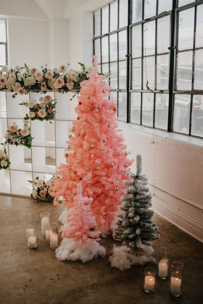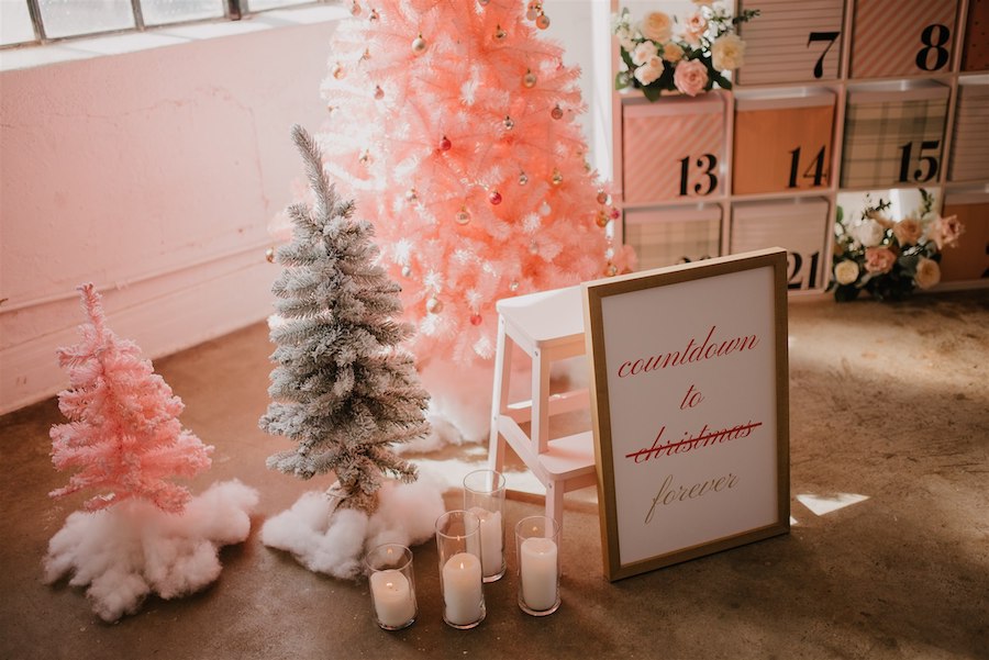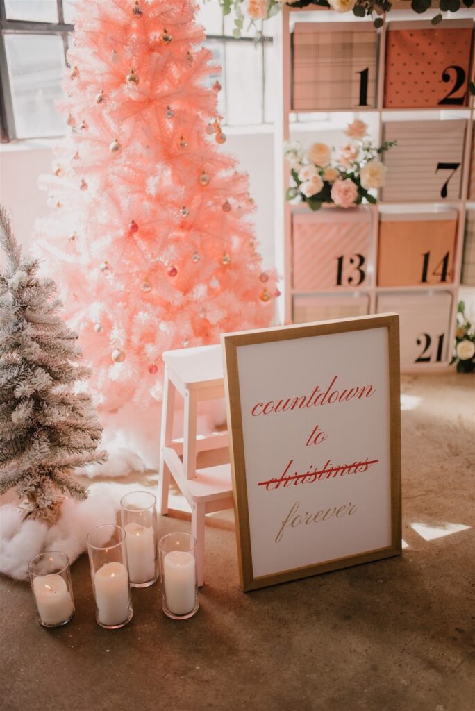 This Houston Christmas proposal transformed a beloved holiday tradition into a deeply personal love story with a life-size advent calendar designed to build anticipation in the most meaningful way. Set inside a bright, airy studio, the space featured blush and ivory florals, soft candlelight, and whimsical pink Christmas trees, creating a festive yet elevated atmosphere. At the center stood a custom advent calendar, each numbered box holding a gift that represented a special moment in their relationship. As she opened each one, their story unfolded in real time — an emotional journey through the memories that brought them here. With every box, the excitement grew, turning the experience into something immersive and romantic. When she reached the final box, everything shifted, revealing a stunning diamond ring. He got down on one knee, and surrounded by candlelight and meaning, she said yes.