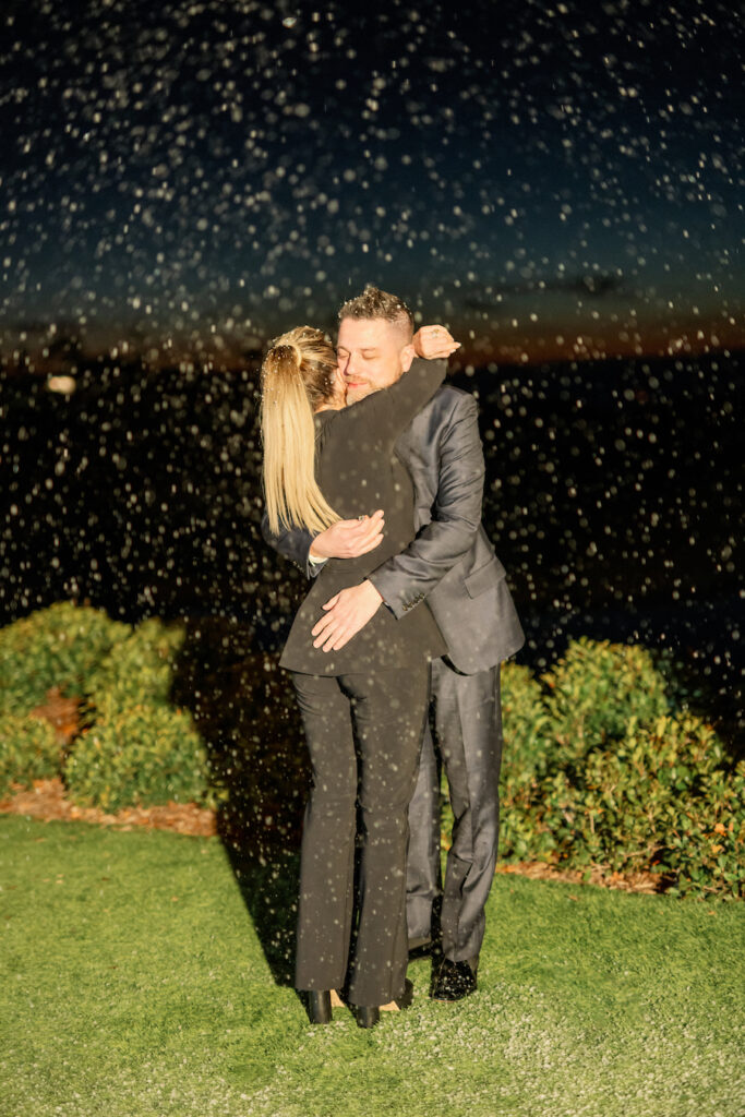 The night reached its pinnacle on a layered, custom-built dance floor where he dropped to one knee once again, re-proposing with her new ring. As they danced the night away, snow gently fell for the grand finale, transforming the oceanfront lawn into a dreamlike celebration. This 20-Year Anniversary Grand Re-Proposal was nothing short of extraordinary — a powerful reminder that love only deepens with time.