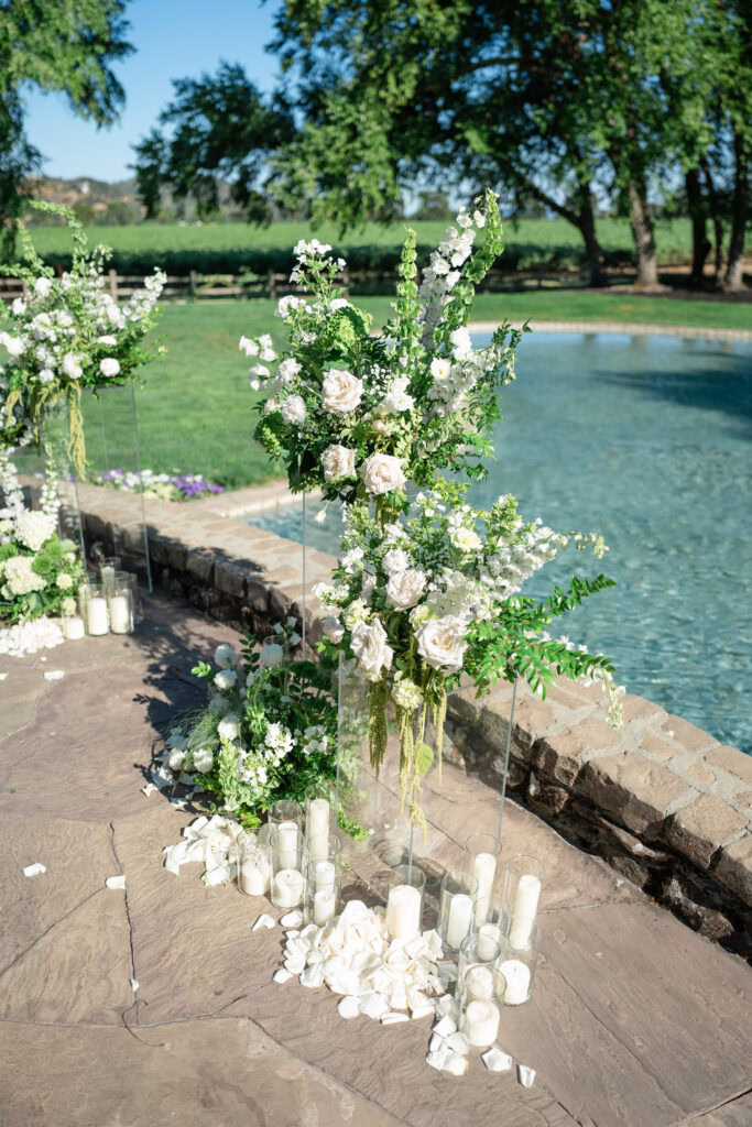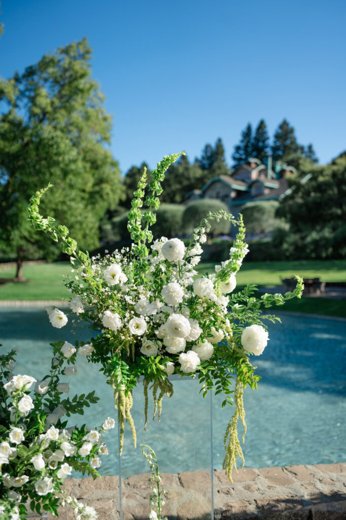 What began as a simple winery tour and tasting turned into the surprise of a lifetime. Surrounded by rolling vineyards and a sunlit estate, this romantic Napa Valley proposal unfolded on a charming stone bridge overlooking crystal-blue water. Lush white and green florals framed the scene, perfectly complementing the natural beauty of the property. As he dropped to one knee, she realized this wasn’t just another afternoon in wine country — it was the start of their forever. The moment was intimate, heartfelt, and overflowing with joy, a perfect blend of Napa’s timeless elegance and genuine romance.