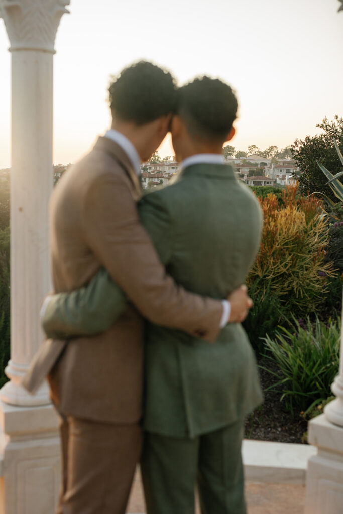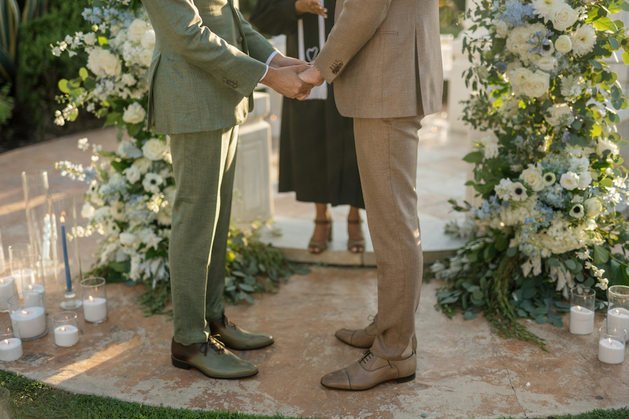 This elegant Orange County elopement is set beneath a stunning white gazebo, where blue and white florals create a timeless, romantic atmosphere. Thoughtfully planned from start to finish, every detail is seamlessly coordinated — from the lush floral design framing the ceremony to the couple’s perfectly matching suits, adding a modern and refined touch. Surrounded by soft candlelight and sweeping views, this intimate celebration feels both sophisticated and deeply personal, proving that elopements can be just as elevated and meaningful as grand weddings.
