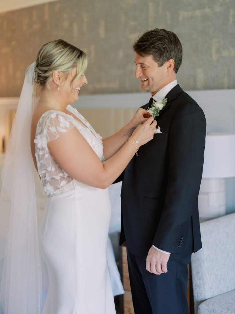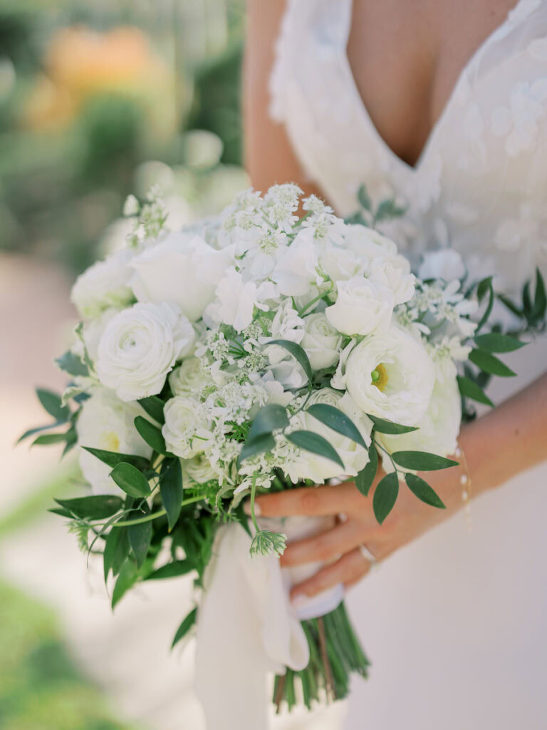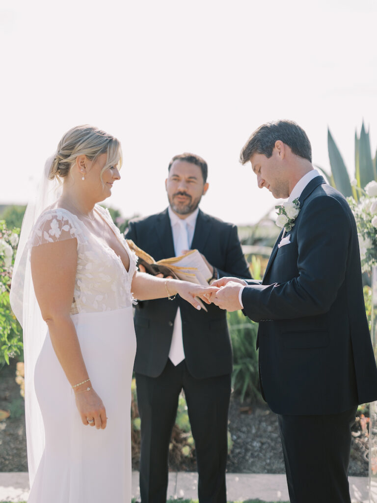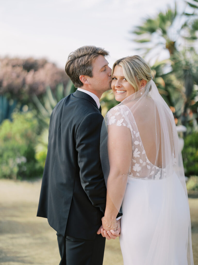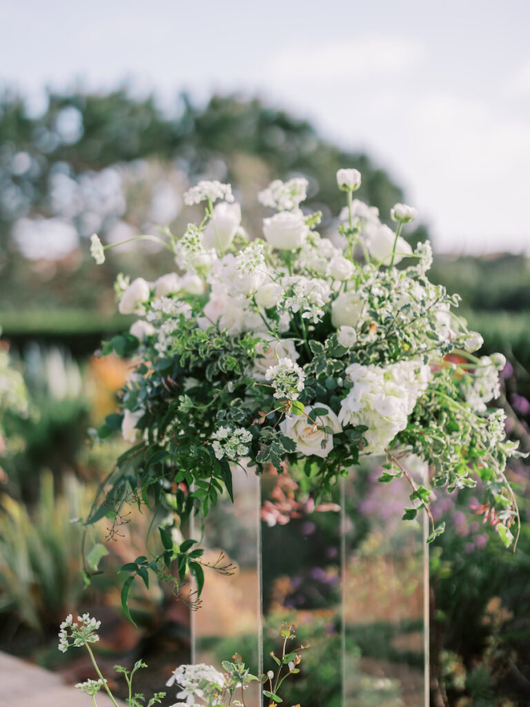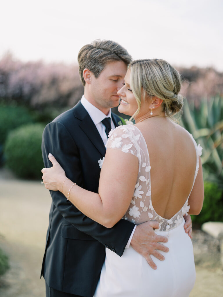 This intimate Orange County elopement was pure romance from start to finish. With only the couple present, The Yes Girls curated every detail to make the day feel deeply personal and meaningful. Set against sweeping ocean views, the ceremony space bloomed with soft white and green florals that framed the couple as they exchanged vows under the California sun.