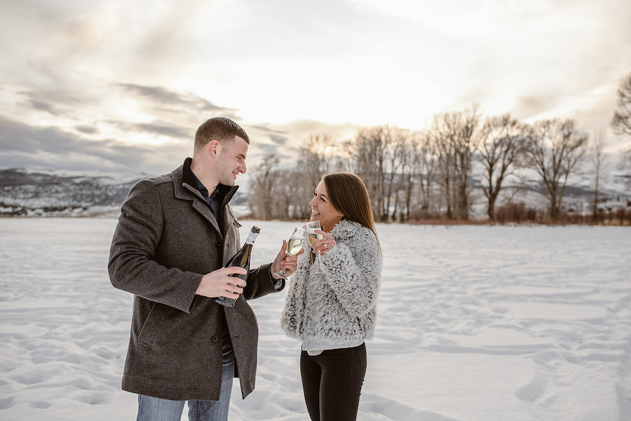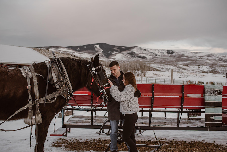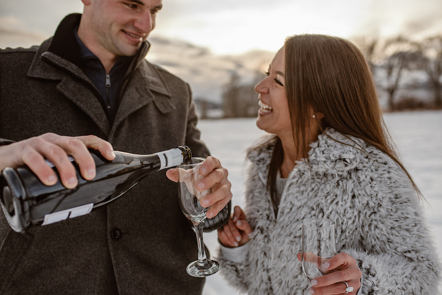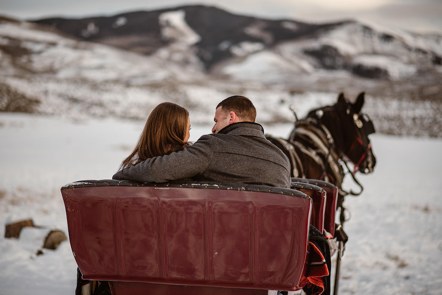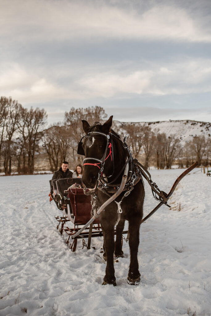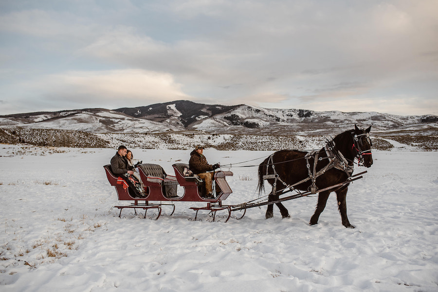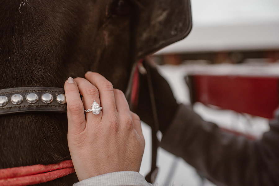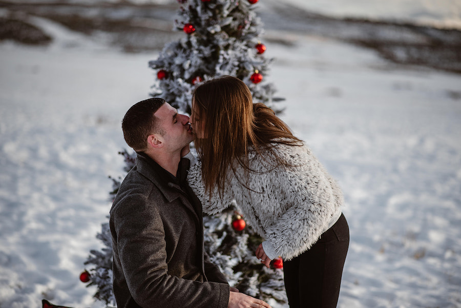 This magical winter proposal in Vail, Colorado felt like stepping into a real-life snow globe. The experience began with a romantic horse-drawn carriage ride through the snowy landscape, setting the tone for an unforgettable holiday moment. The carriage delivered the couple to a custom-designed, Christmas-inspired proposal setup featuring a frosted evergreen tree adorned with red ornaments, cozy plaid accents, and festive décor that made the scene feel warm despite the mountain chill. Surrounded by breathtaking alpine views and fresh snow, he dropped to one knee in front of their one-of-a-kind holiday setting — a Vail proposal that was equal parts nostalgic, intimate, and truly unforgettable.