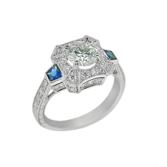 18K WHITE GOLD .85CT DIAMOND .45CT SAPPHIRE ART DECO SETTING