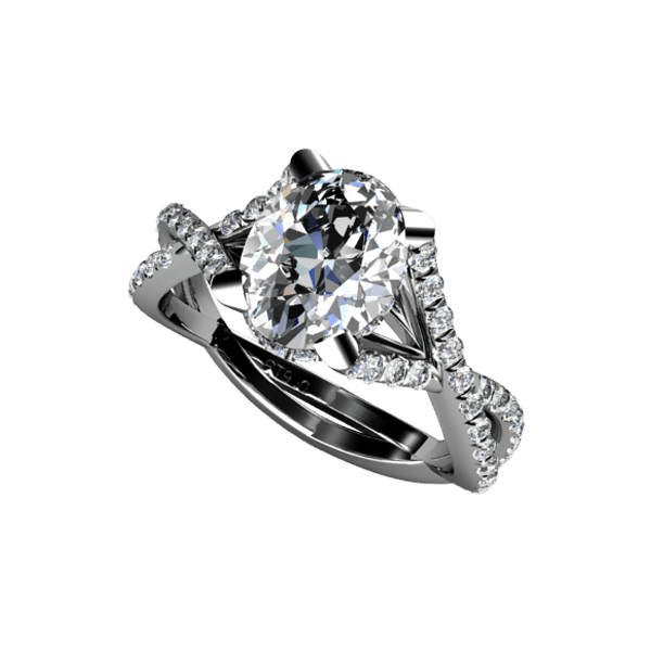 KNIFE EDGE, BEAD SET, SPLIT SHANK ENGAGEMENT RING WITH 80 ROUND BRILLIANT CUT DIAMONDS WEIGHING 0.42 CARATS. AVAILABLE IN PLATINUM, 18 KARAT WHITE, YELLOW OR ROSE GOLD.