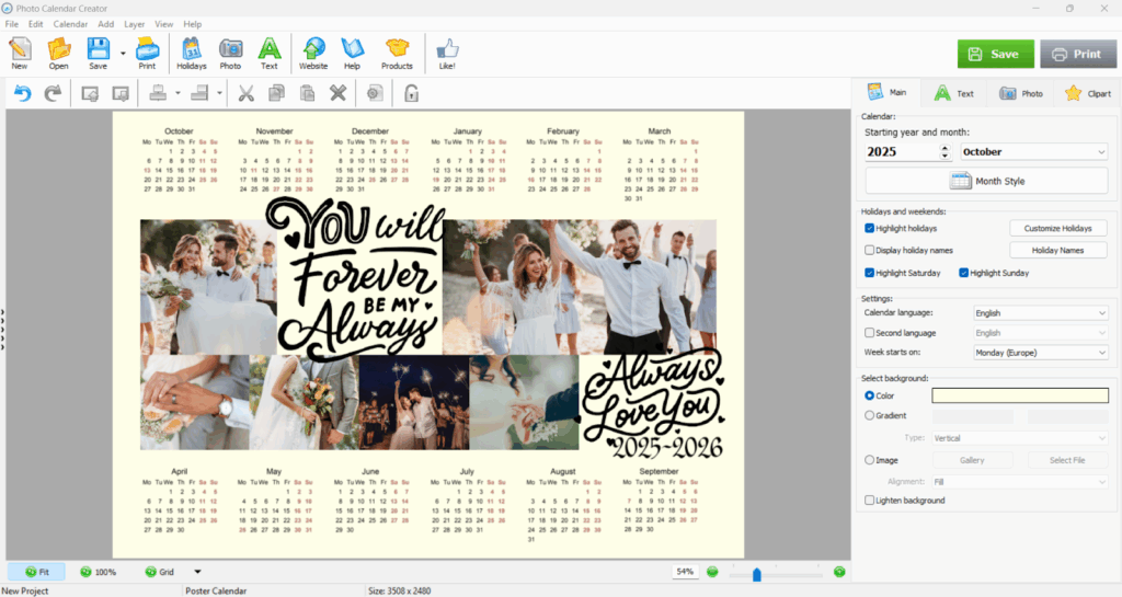 One of the best features is its drag-and-drop interface. You simply select your favorite photos and place them into the template. You can add text to special dates. You can mark your anniversary, birthdays, and other important milestones. The software lets you preview the entire year before you print. You can print it at home on nice paper or use an online service for a professional, bound copy.