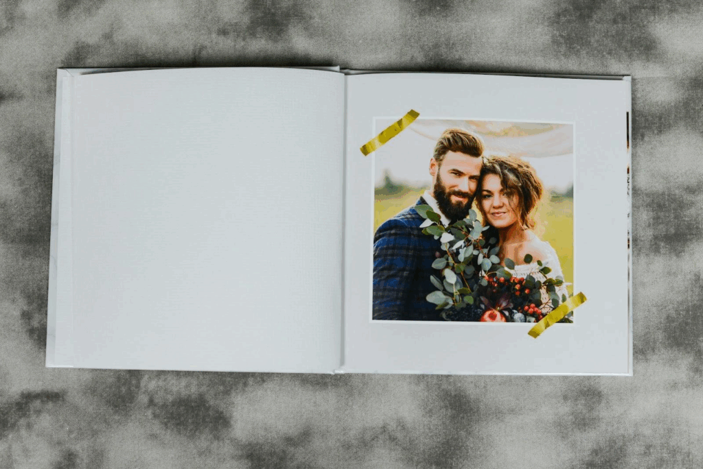 A photo book is a classic for a reason. It allows you to narrate your story from the first date to the “I do’s.” But think beyond just inserting pictures into a template.