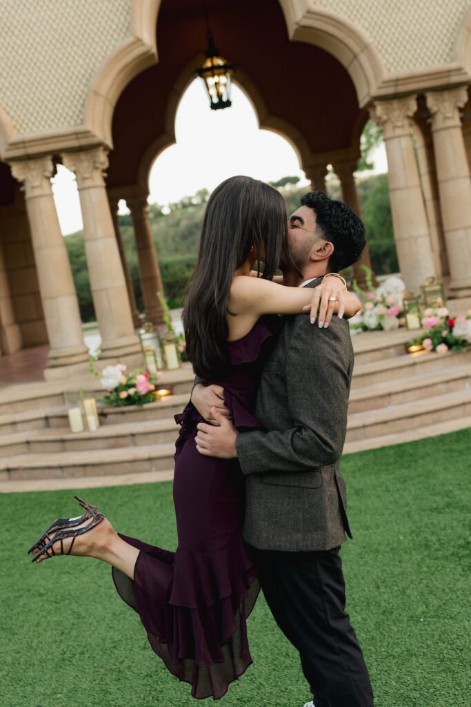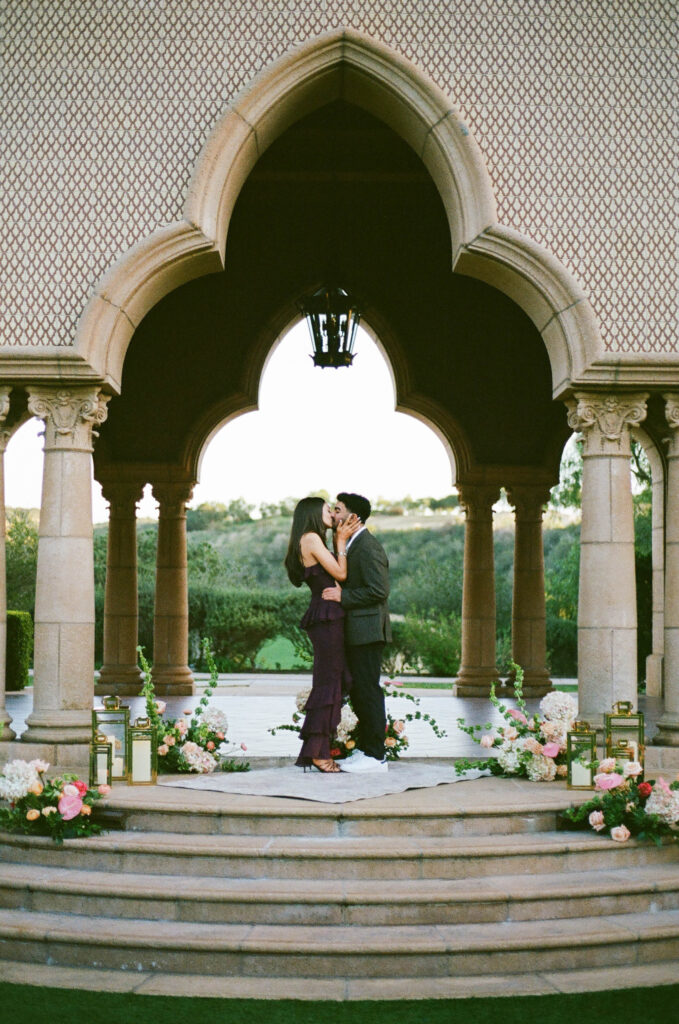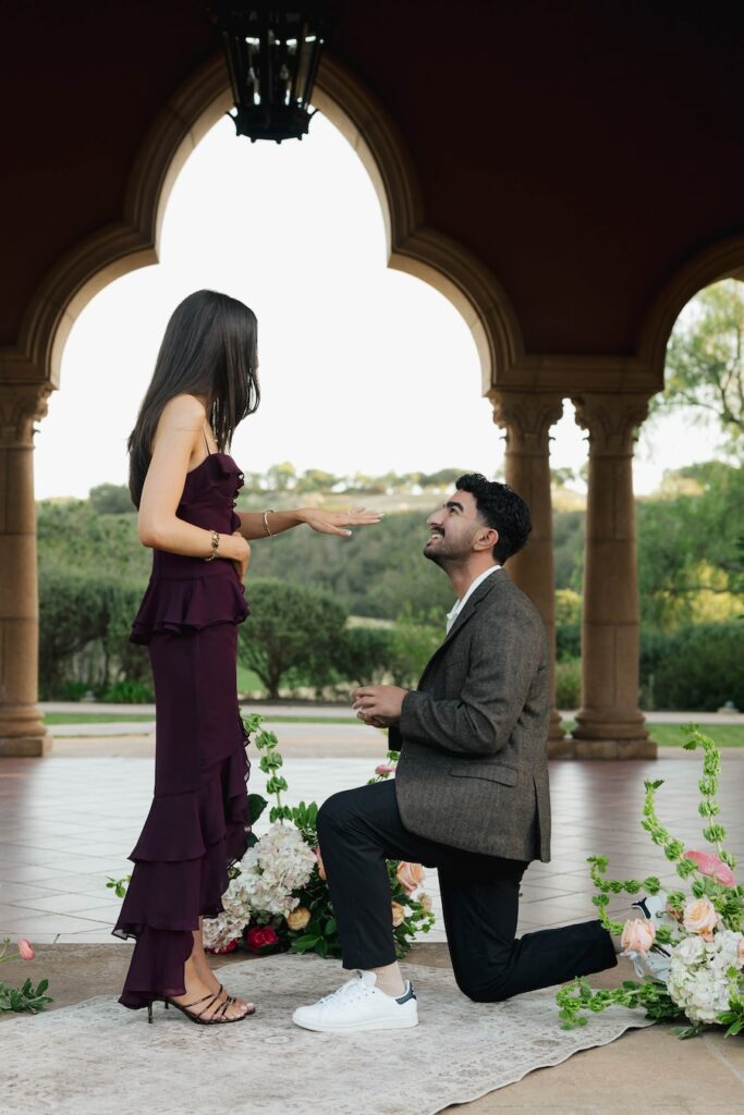 Set beneath the iconic arches of the Fairmont Grand Del Mar, this elegant proposal felt like a scene straight out of a romantic dream. Surrounded by pink and white florals, glowing lanterns, and timeless architecture, the moment he dropped to one knee was both intimate and unforgettable. A perfect blend of classic luxury and heartfelt emotion, this proposal was pure magic from start to finish.