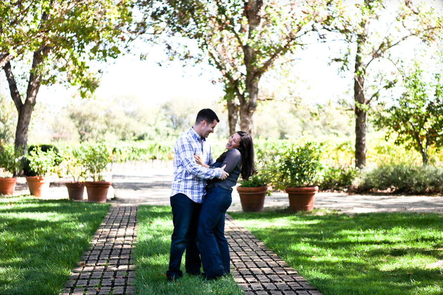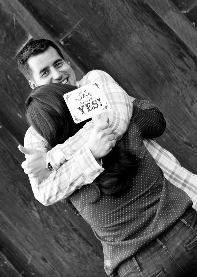 Finishing their tasting, the staff encouraged them to go try the grapes and walk the grounds while they fetched their wine they planned to purchase. Around the corner, through the rose garden and up on a little grass hill awaited their engagement. She found wine glasses with their future monogram and her last special gift…a canvas photo of that exact winery to remember where they always got engaged. The card on the wine barrel explained the meaning behind each item and how he never wanted her to forget something as special as the moment he asked her to be his wife. Lauren answered with an immediate “yes!” and they finished off the day with a few celebration photos, visiting other wineries and a romantic dinner in The City.