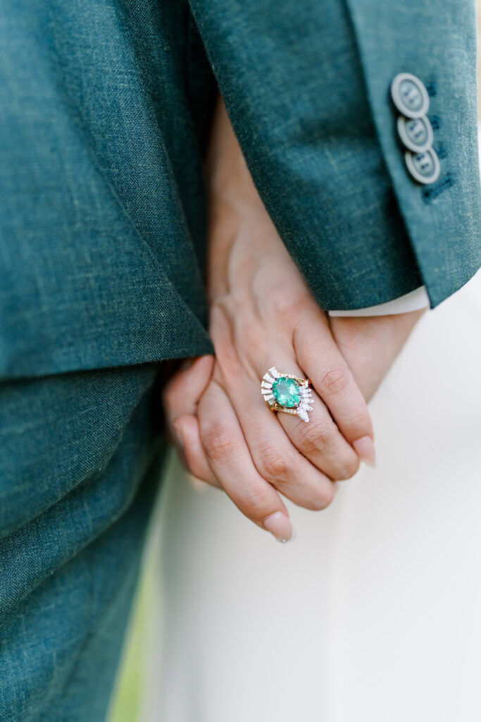 Her ring was equally extraordinary. A custom-designed engagement ring with a striking teal center stone, it was a true reflection of her individuality and love story. This detail made the proposal even more meaningful, symbolizing how their love is unlike any other.