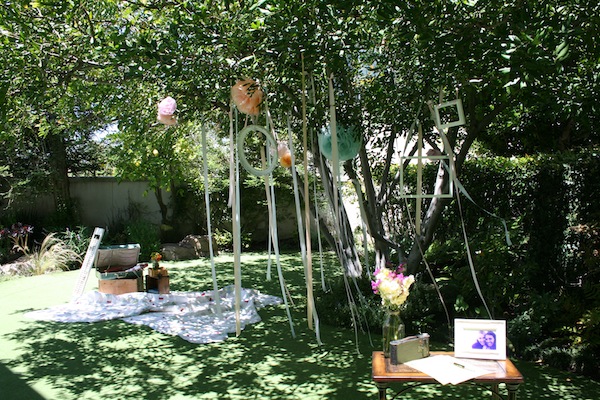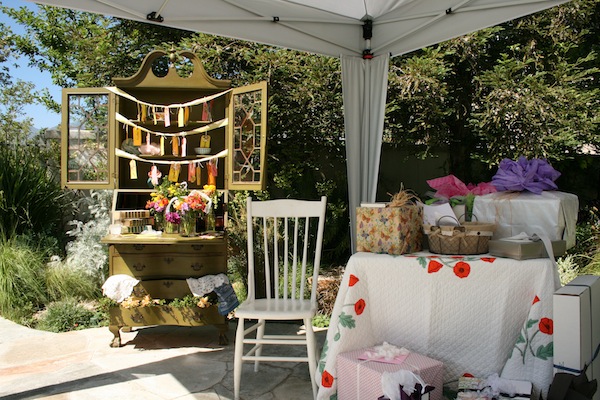 I have been dying to share these photos and details from our friend Melissa’s tea bridal shower. Our hope was to transform the backyard into a whimsical and anthropology-esk space that the bride-to-be would fall in love with immediately. Gaging her reaction, I would say the shower was a definite success and the company was wonderful. The big floppy hats were not only a fun decor element but they came in handy during a Summer day in June!