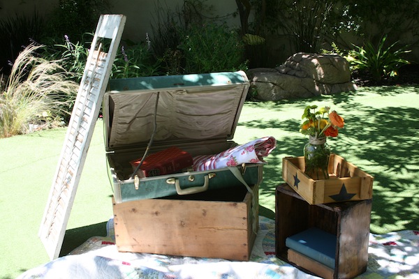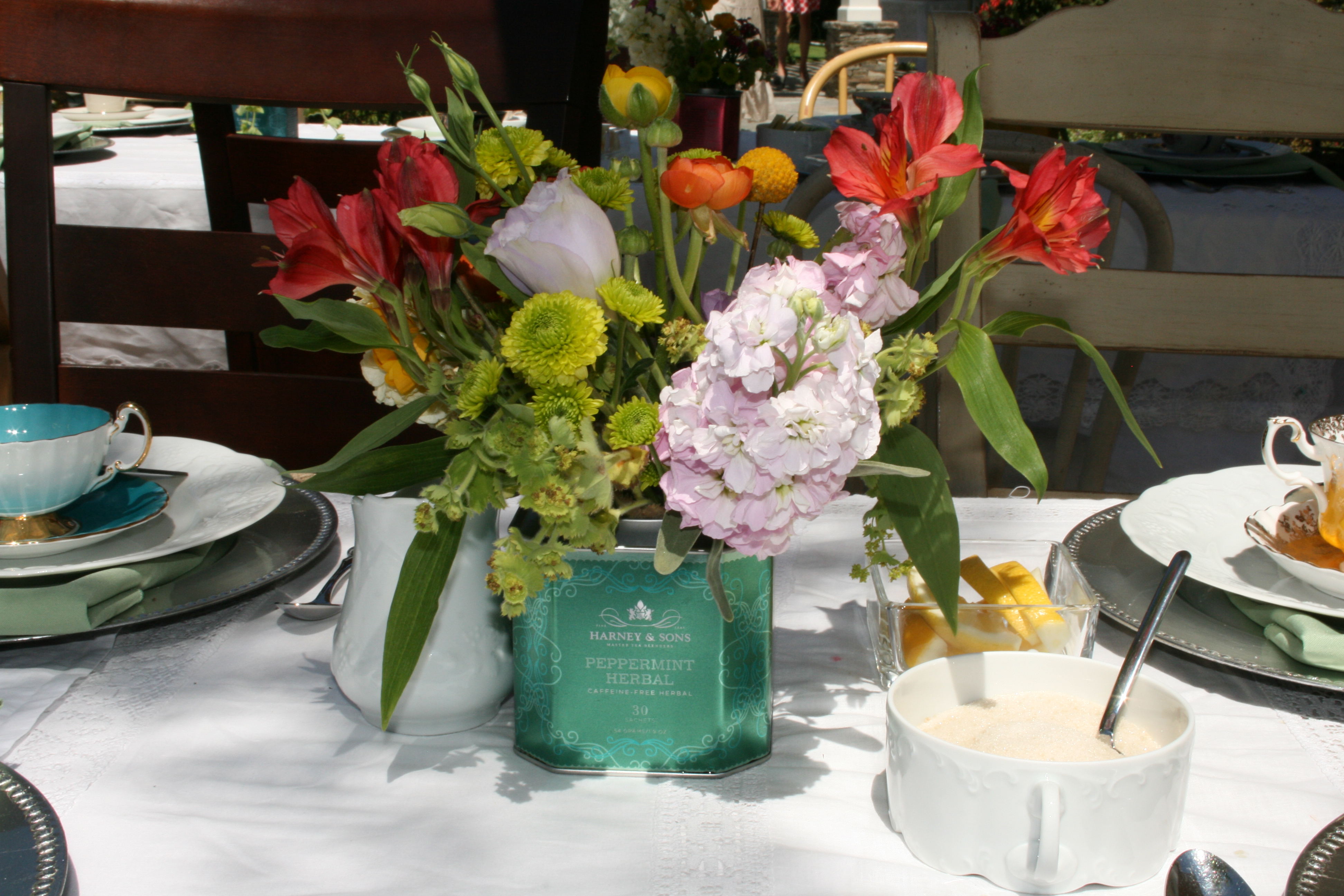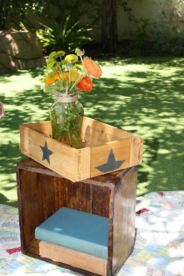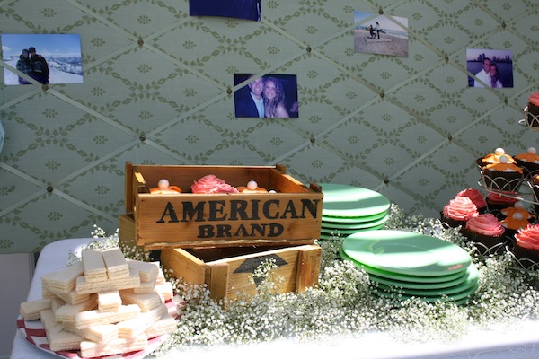 We arranged all the florals in tea tins to bring more color and life to the vintage white table cloths. The tea cups, which doubled as the guests’ favors, brought character to each place setting. The chairs/bench were a collection from various dining room tables which played perfectly into our theme. Throughout the yard, oversized tissue flowers looked as if they were blooming from the bushes and trees. The cupcake table was embellished with crates that sat amongst a bed of babies breath, as if the desserts were floating on a cloud of goodness. Most importantly, Melissa got to spend quality time with friends and family being showered with love and gifts from a group that absolutely adores her.