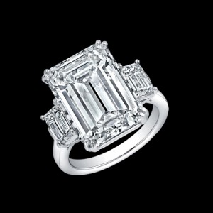 Three Stone Emerald Cut Diamond Platinum Ring. The beautiful three stones overwhelms (in a good way) the understated band. Regardless of the huge diamond, the ring still “speaks” simplicity.
