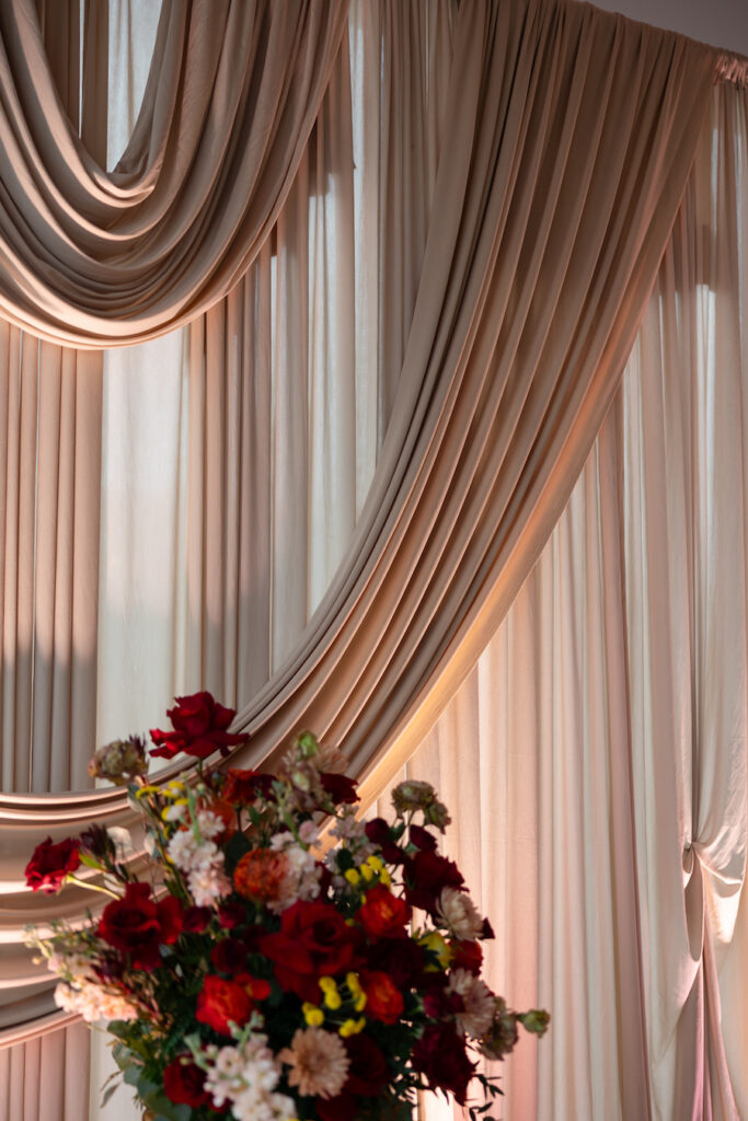 There’s something undeniably timeless about a beautifully designed proposal, and this New Jersey Luxury Proposal Set Up Package was the perfect reflection of romance, intention, and elevated detail. From the moment she walked into the space, she was surrounded by soft, flowing drapery, glowing candlelight, and the rich, romantic tones of red florals that instantly set the mood for an unforgettable proposal experience.