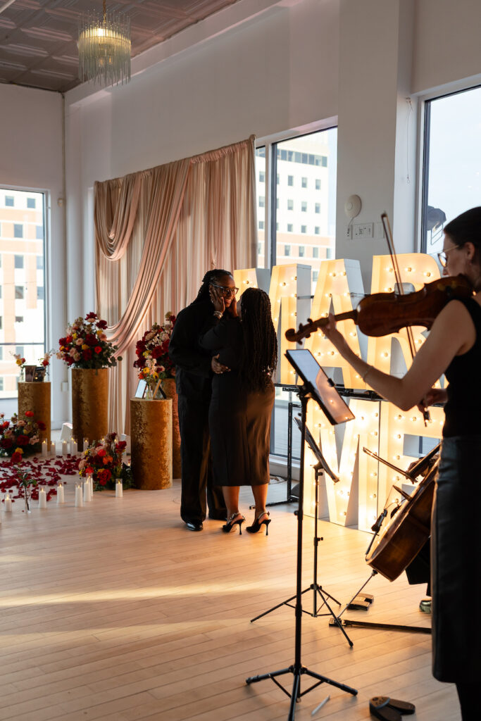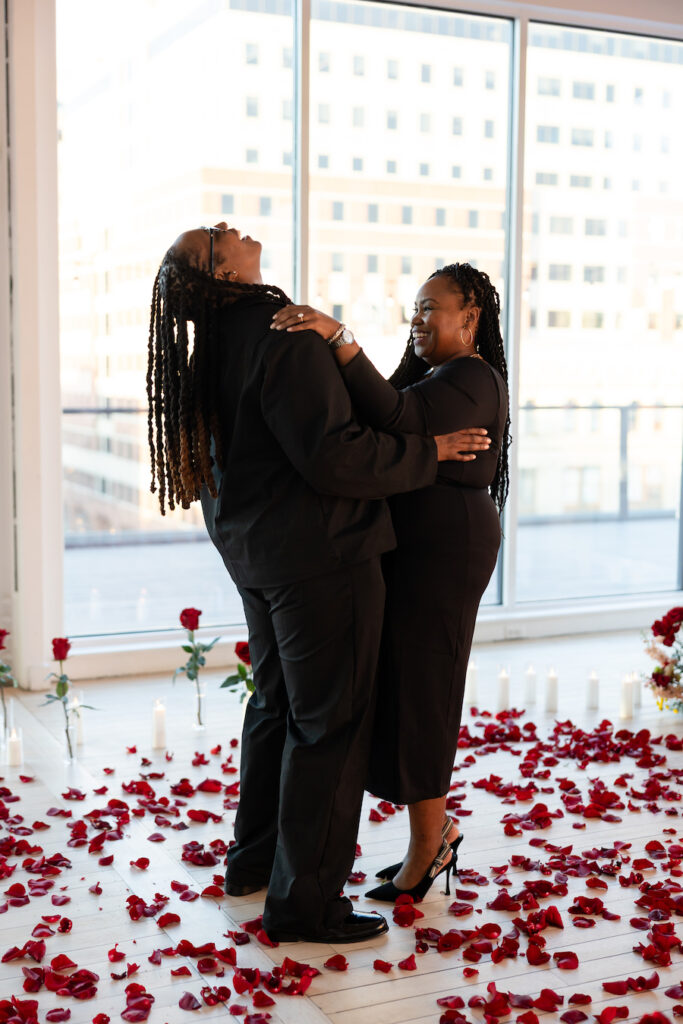 When she dropped to one knee, the room seemed to pause. Surrounded by candlelight, florals, and the quiet intimacy of the space, she asked the most important question of his life. Her reaction said it all—pure joy, surprise, and overwhelming love. These are the moments that define what a truly luxury proposal experience should feel like: effortless, emotional, and completely unforgettable.