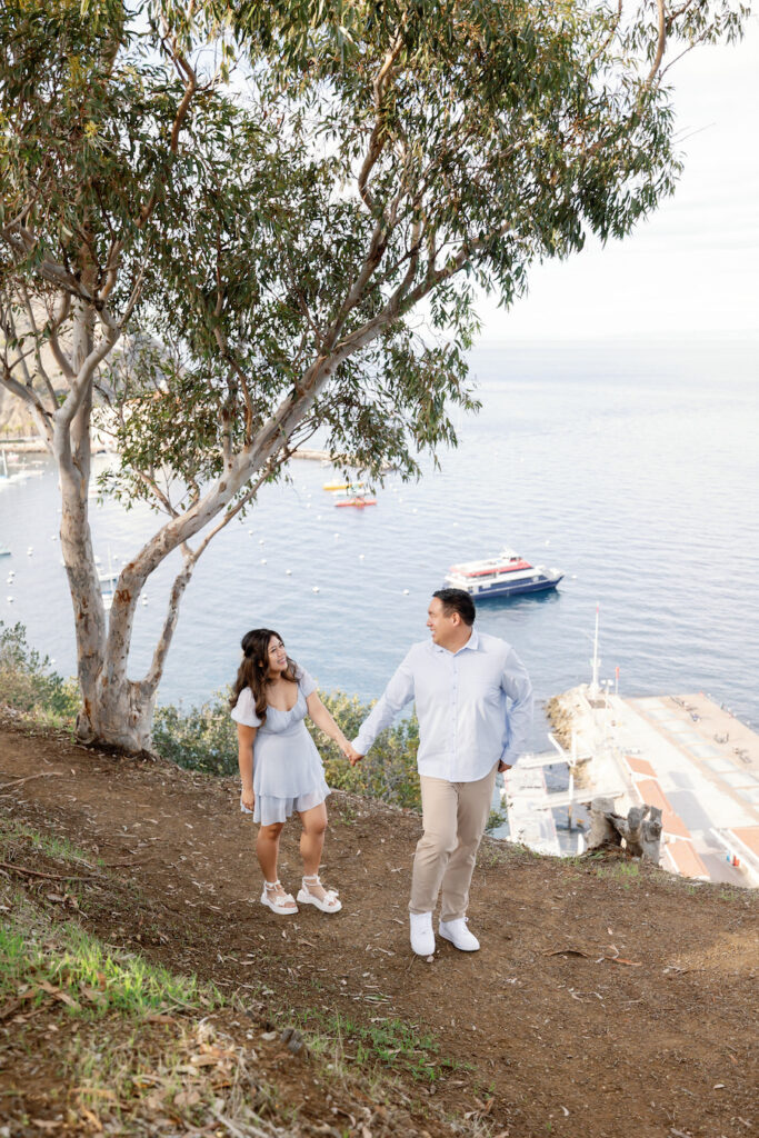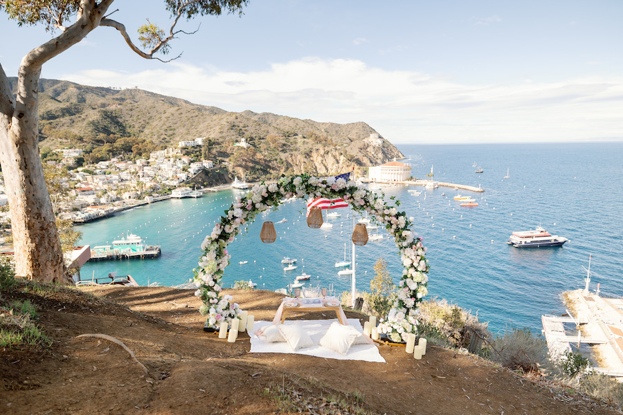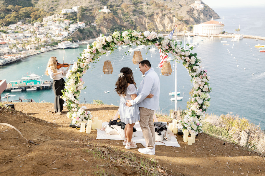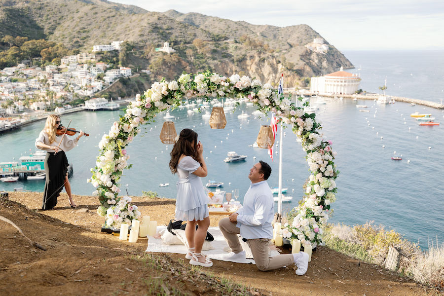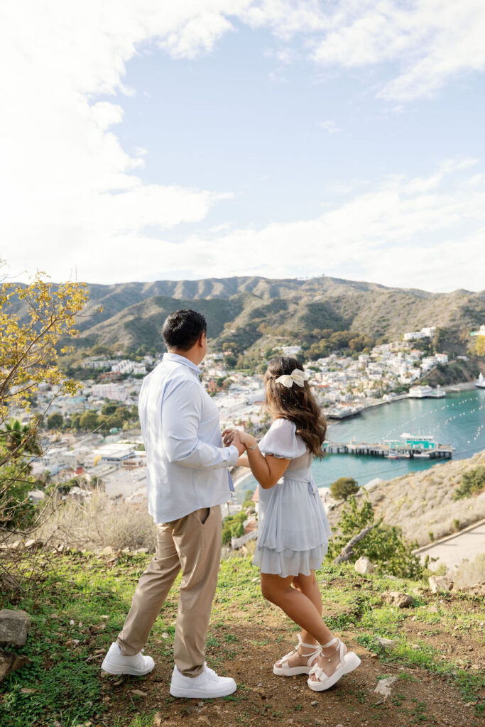 There’s something undeniably dreamy about Catalina Island, and for this picture-perfect proposal, the island absolutely showed off. The weather could not have been more perfect—clear skies, gentle ocean breeze, and warm golden light that made the entire moment feel straight out of a fairytale. It was the ideal backdrop for a heartfelt, intimate proposal overlooking the sparkling Avalon Bay.