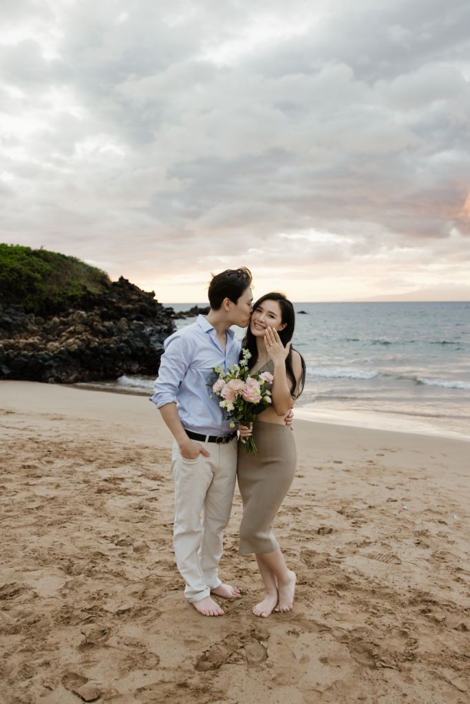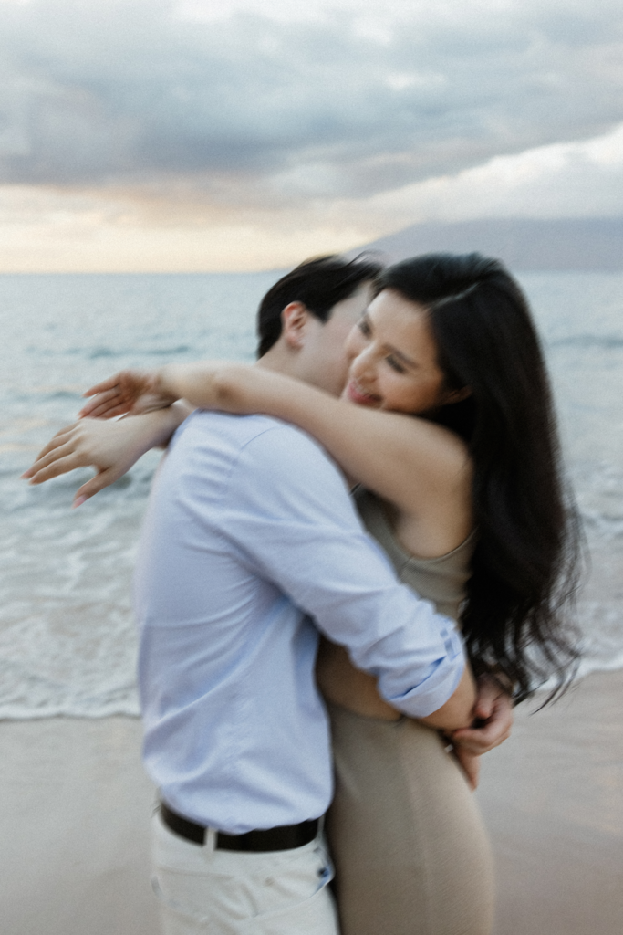 To celebrate, they took to the beach, where the golden light of sunset cast a breathtaking glow over the horizon. Their photographer captured their stunning engagement, each photo a testament to the love and joy they felt in that moment. Hand in hand, they laughed and embraced as they soaked in the magic of the evening. Their proposal in Wailea, Maui, will forever be a cherished memory for them; a story they would tell for years to come!
