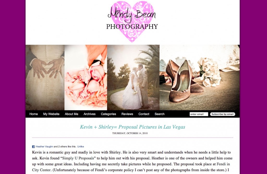 It is always a pleasure working with fantastic, extremely talented photographers and Mindy Bean Photography is no exception. We loved this Las Vegas proposal that Kevin created for Shirley which involved VIP treatment in Fendi at City Center. The lovely Fendi staff individually brought out sweet gifts where Shirley found her engagement ring in her…