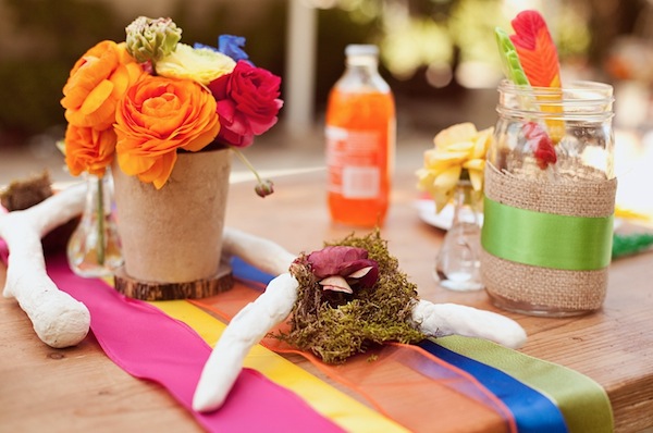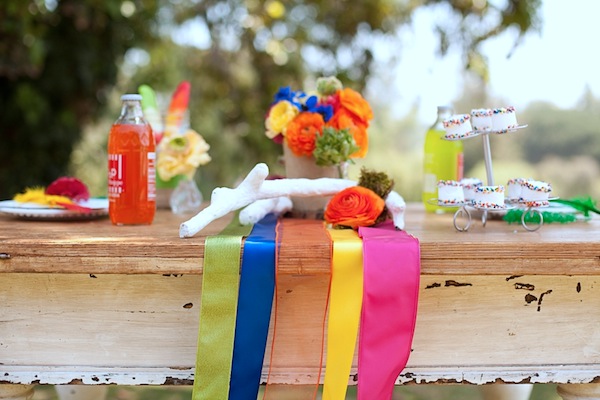 We showed a teaser of this colorful and cheery engagement shoot by Kevin Warn Photography and yours truly which was featured on Style Me Pretty last week! We were so anxious to share the stunning shoot and now it’s here! KC and Bry’s fun-loving relationship was the perfect foundation for such a sweet (pun intended) and happy go lucky atmosphere filled with sprinkled marshmallows, fabric feathers and bright florals.