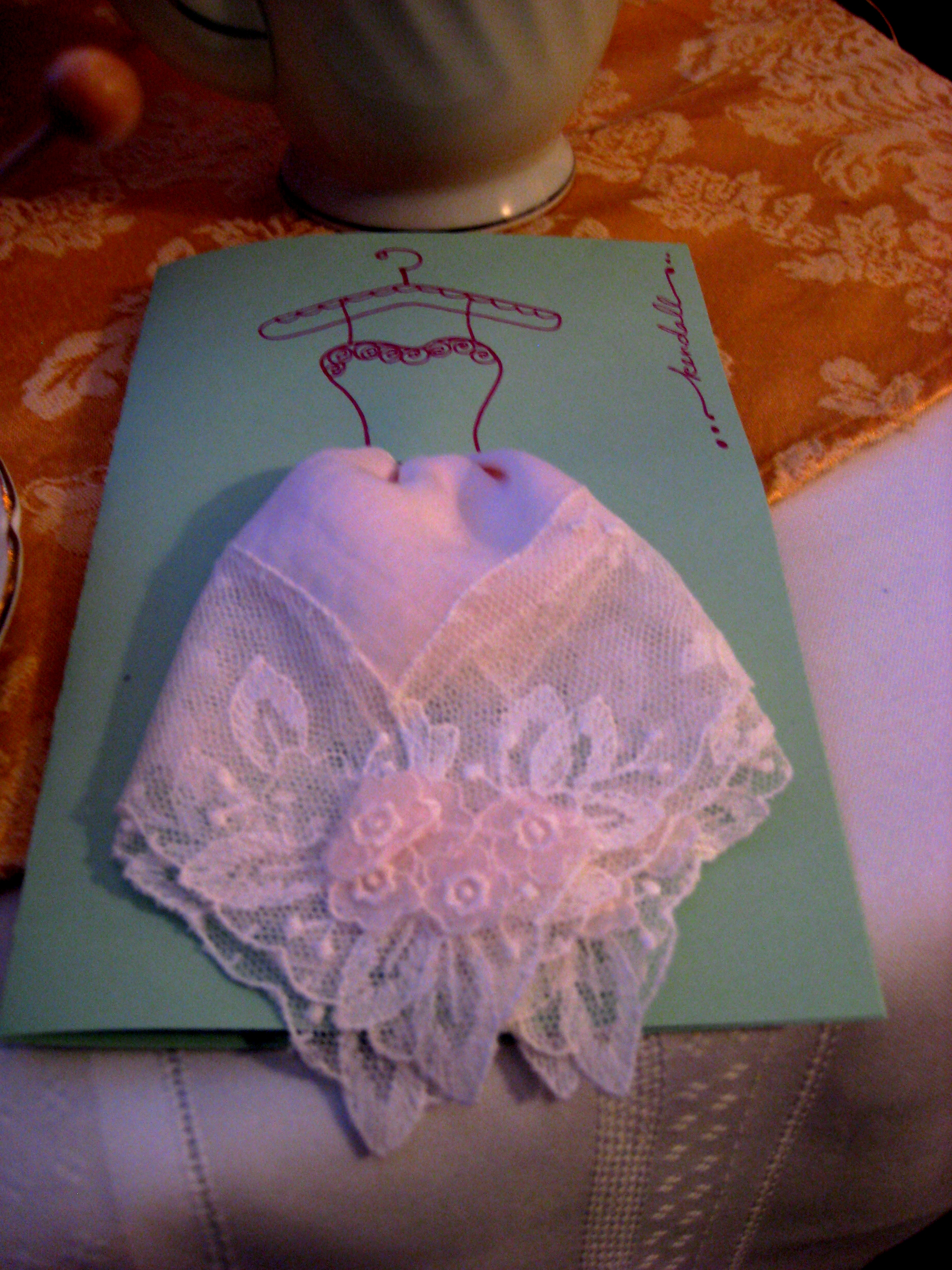 If you are lucky enough to have all your bridesmaids in the same place, surprise them with a lunch, tea or activity out. My friend Amber recently asked her bridesmaids. She threw us a vintage tea in her dad’s backyard with handmade cards made out of handkerchiefs! We all felt so special and honored that she had asked us and asked us in a way that really served us. She poured our tea and made all the food herself!
