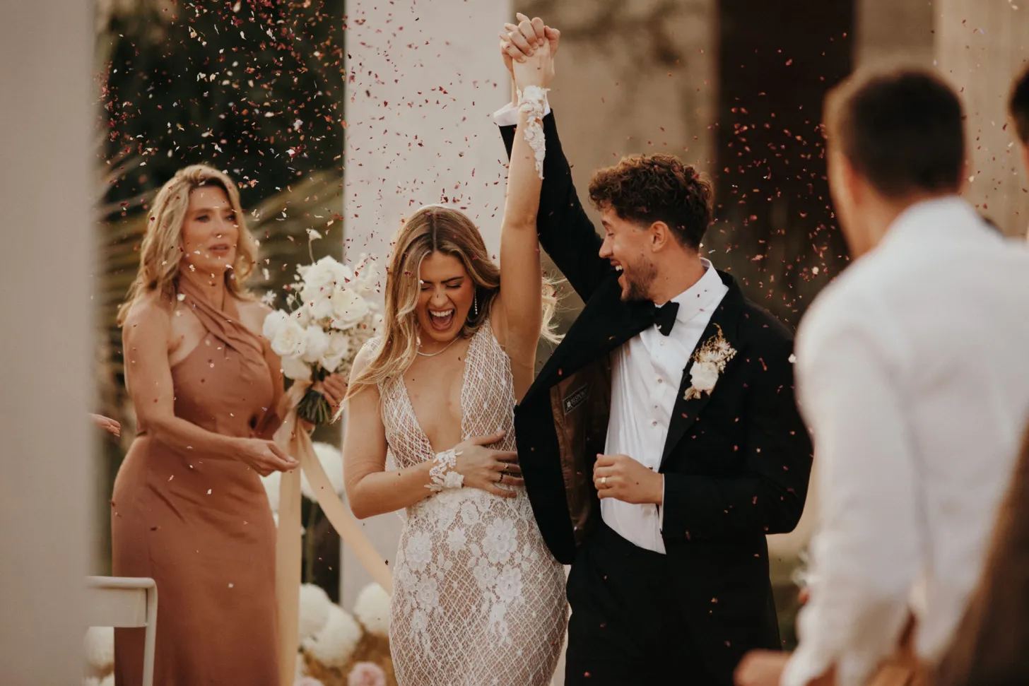 The Paradero Hotel in Todos Santos, Mexico, offered breathtaking brutalist architecture amidst a stunning landscape of palm trees, cacti, mountains, and sunsets. It was the ideal location for an intimate wedding focused on the couple, their community, and innovative design.