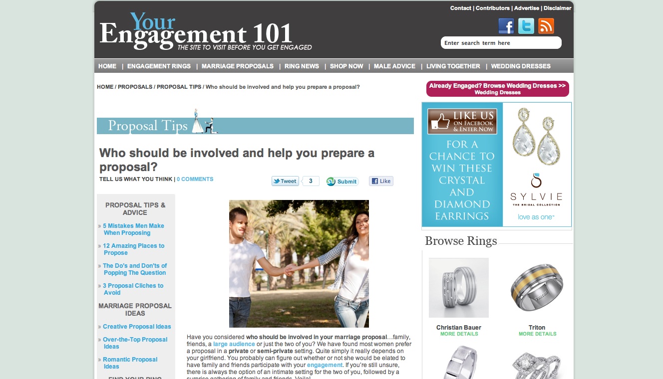 Happy Friday! Below is a sneak peak of our monthly proposal article “Who Should Be Involved?” featured on Engagement 101. If you or your friend is on the brinks of popping the question then this is for you! The Yes Girls advice in Engagement 101, “Have you considered who should be involved in your marriage…